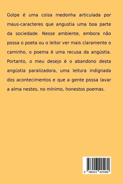 Golpe é uma coisa medonha articulada por maus carateres que angustia uma boa parte da sociedade. Nesse ambiente, embora não possa o poeta ou o leitor