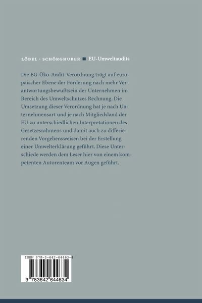 Ökoaudit: Ein Baustein für die Schaffung einer nachhaltigen Wirtschaftsstruktur.- Überblick und Einführung zu den Kernelementen des EU-Umweltaudits.- Eckpfeiler der EMAS-Umsetzung in Österreich.- Umweltaudits in kleinen und mittleren Unternehmen.- Die Praxis des EU-Umweltaudits in Österreich.- Das Umweltaudit und die nationale und internationale Normung.- Funktionen und Status des zugelassenen Umweltgutachters.- EMAS-Verordnung und IS014001- Möglichkeiten für die praktische Umsetzung in Betrieben.- Wirksames Energiemanagement als Teil des Umweltaudits.- Durchführung des Umweltaudits für Banken und Versicherungen.- Abfallwirtschaftskonzepte: Ein wichtiger Teilbereich für das Öko-Audit.- Die Anwendung der Umweltaudit-Systematik in einem Unternehmen des Einzelhandels.- Zukunftsfähige Geschäftsprozesse - Stoff- und Energiebilanzen, Ökologische Bewertung und Kostendarstellung mit "E3-Audit".- ÖKO-AUDITOR - EDV -Unterstützung für effizientes Umweltmanagement.- Der Nutzen des EU-Umweltaudits zur Deregulierung am Beispiel des BImSchG.- Nutzen des Umweltaudits für umwelthaftungsrechtliche Fragen.