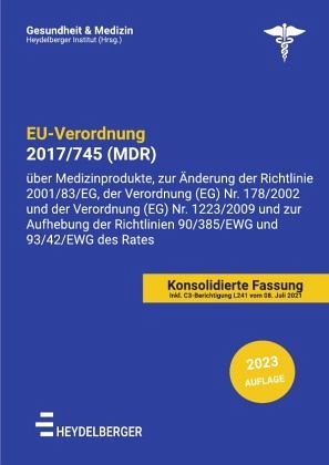 Neue Ausgabe 2023, konsolidierte Fassung mit allen Berichtigungen und Ergänzungen seit Erstveröffentlichung:Die EU-Verordnung als Nachschlagewerk und Arbeitsheft im handlichen A4-Format für Juristen, Regulatory Manager, Studenten sowie Fach-Führungskraft und Experten im Gesundheitsbereich. Im vorliegenden Band der Reihe "Gesundheit und Medizin" finden Sie in gedruckter Ausgabe die EU Verordnung 2017/745 (MDR) über Medizinprodukte, zur Änderung der Richtlinie 2001/83/EG, der Verordnung (EG) Nr. 178/2002 und der Verordnung (EG) Nr. 1223/2009 und zur Aufhebung der Richtlinien 90/385/EWG und 93/42/EWG des Rates.HEYDELBERGER bietet EU-Verordnungen im handlichen A4-Format an. Praktisch für Alle, die sich auf die die Umsetzung, Lehre oder auch Beratung von EU-Verordnungen konzentrieren und ein preiswertes Arbeitsbuch und/oder Nachschlagewerk zur Hand haben möchten. Der Erwerb ermöglicht zudem den Zugang zur HEYDELBERGER Kompetenz-Plattform. Hier besteht die Möglichkeit, sich in Expertennetzwerken auszutauschen und Unterstützung für die konkrete Umsetzung von EU-Verordnungen zu finden.