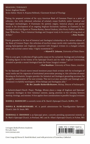 A Eucharist-shaped Church: Prayer, Theology, Mission places a range of Anglican and Episcopal eucharistic theologies in their historical contexts, paying attention to the interplay between worship, theology and mission. It then applies these considerations to possible liturgical revisions.