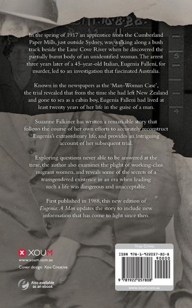 In the spring of 1917 an apprentice from the Cumberland Paper Mills, just outside Sydney, was walking along a bush track beside the Lane Cove River when he discovered the partially burnt body of an unidentified woman. The arrest three years later of a 45-year-old Italian, Eugenia Falleni, for murder, led to an investigation that fascinated Australia. Known in the newspapers as the 'Man-Woman Case', the trial revealed that from the time she had left New Zealand and gone to sea as a cabin boy, Eugenia Falleni had lived at least twenty years of her life in the guise of a man. Suzanne Falkiner has written a remarkable story that follows the course of her own efforts to accurately reconstruct Eugenia's extraordinary life, and provides an intriguing account of her subsequent trial. Exploring questions never able to be answered at the time, the author also examines the plight of working-class migrant women, and reveals some of the secrets of a transgendered existence in an era when leading such a life was dangerous and unacceptable. First published in 1988, this new edition of Eugenia: A Man updates the story to include new information that has come to light since then. Praise for Eugenia: A Man by Suzanne Falkiner 'Thoughtful, absorbing.' -The Sydney Morning Herald 'Lucidly written by a trenchant and conscientious writer, Eugenia: A Man is undoubtedly the fullest and fairest account of the curious and tragic life of a transsexual in Sydney at the turn of the century.' -Mark Try, Campaign 'Suzanne Falkiner's treatment of this story is impressive in several ways. It skilfully alleviates the monotony of old documents; it traces a complex life with reportorial skill, it makes this past sequence a matter of present concern and enlightenment ... As the author of a good book, and, rarer still, a good book about crime, Falkiner deserves both praise and respect.' -Stephen Knight, The Age Monthly Review 'Well-researched and clearly written.' -Peter Corris, The Weekend Australian