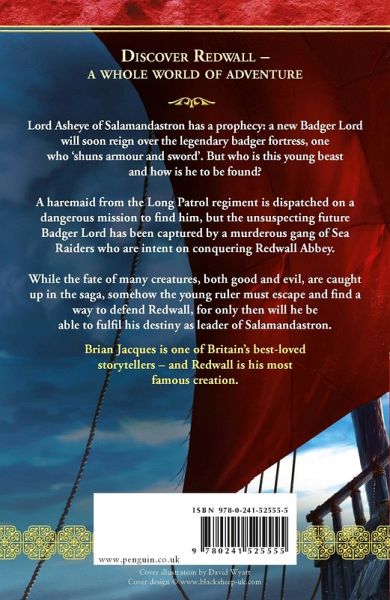 The nineteenth book in the classic fantasy Redwall series - perfect for readers aged 9+. Lord Asheye of Salamandastron has a prophecy: a new Badger Lord will soon reign over the legendary badger fortress, one who 'shuns both armour and sword'. But who is he and how is he to be found? A young haremaid from the Long Patrol regiment is dispatched on a dangerous mission to find him - but the unsuspecting future Badger Lord has been captured by a murderous gang of Sea Raiders, intent on conquering Redwall Abbey. While the fate of many creatures, both good and evil, are caught up in the saga, somehow the young ruler must escape and find a way to defend Redwall, for only then will be be able to fulfil his destiny as leader of Salamandastron. Brian Jacques is one of Britain's best-loved storytellers - and Redwall is his most famous creation. Discover the complete list of titles in the Redwall series: Redwall Mossflower Mattimeo Mariel of Redwall Salamandastron Martin the Warrior The Bellmaker Outcast of Redwall The Pearls of Lutra The Long Patrol Marlfox The Legend of Luke Lord Brocktree The Taggerung Triss Loamhedge Rakkety Tam High Rhulain Eulalia! Doomwyte The Sable Quean The Rogue Crew