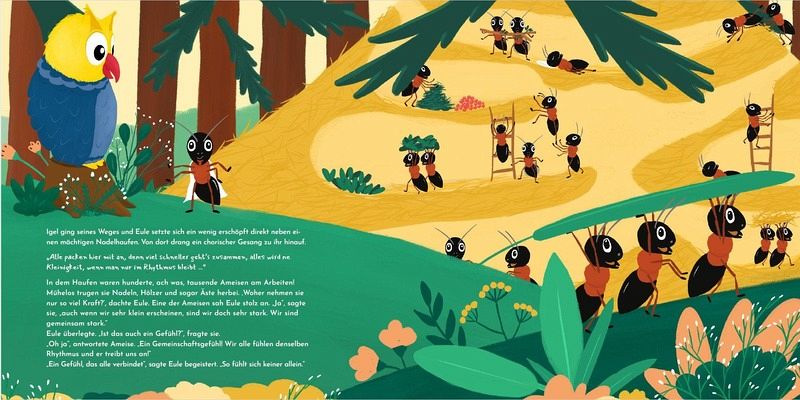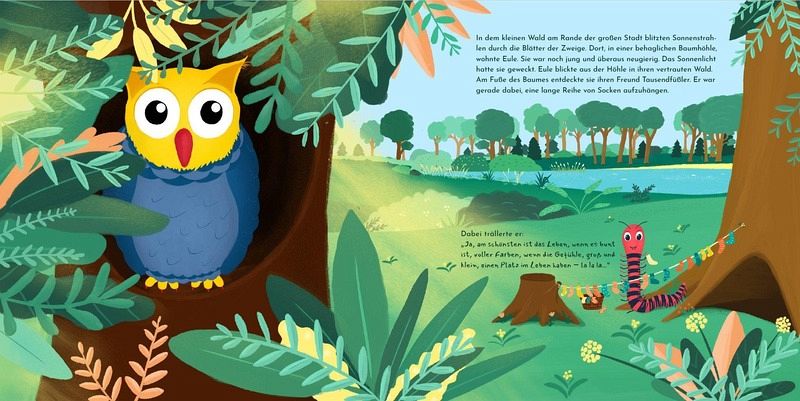 Eules Freund Tausendfüßler trällert eines Morgens ein Lied über Gefühle vor sich hin. Eule fragt sich nachdenklich: Was ist das eigentlich - ein Gefühl? Auf ihrer Suche trifft sie die verliebten Eichhörnchen, sie hört dem wütenden Igel zu, und mit Wölfin redet sie über die Traurigkeit, die manchmal zu einem kommt. Kann auch Eule mithilfe der anderen schließlich herausfinden, welche Gefühle in ihr schlummern?
