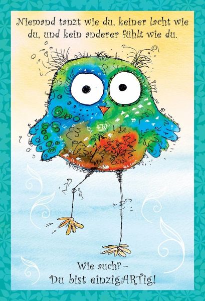 Mit den Eulen ins Glück! Lebenskünstler, Glücks(er)finder, Spaßbringer - die kleinen Eulen wissen, wie wir jeder Situation mit Leichtigkeit, Liebe und Witz begegnen. Mit viel Charme geben sie uns ihre Weisheiten mit auf den Weg und zaubern uns ein Lächeln ins Gesicht, wann immer wir es brauchen.