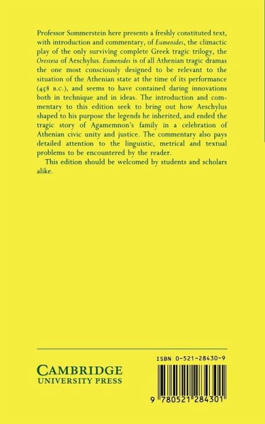 Professor Sommerstein presents here a freshly constituted text, with introduction and commentary, of Eumenides, the final play in Aeschylus' Oresteia trilogy.