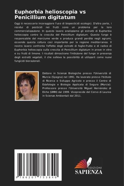 Oggi è necessario incoraggiare l'uso di biopesticidi ecologici. D'altra parte, i residui di pesticidi nei frutti sono un problema per la loro commercializzazione. In questo lavoro analizziamo gli estratti di Euphorbia helioscopia contro la crescita del Penicillium digitatum. Questo fungo è responsabile del marciume verde e produce grandi perdite negli agrumi, essendo questa coltura così importante per la regione mediterranea. Il nostro lavoro confronta l'effetto degli estratti di foglie-frutto e di radice di Euphorbia helioscopia sulla crescita di Penicillium digitatum in prove in vitro e su frutti di limone. I risultati dimostrano l'inibizione del fungo in presenza degli estratti vegetali, il che solleva la possibilità di utilizzarli come nuovi fungicidi biorazionali.