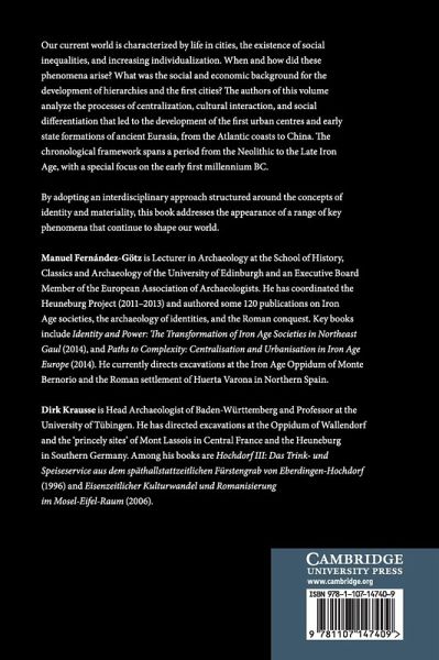 Our current world is characterized by life in cities, the existence of social inequalities, and increasing individualization. When and how did these phenomena arise? What was the social and economic background for the development of hierarchies and the first cities? The authors of this volume analyze the processes of centralization, cultural interaction, and social differentiation that led to the development of the first urban centres and early state formations of ancient Eurasia, from the Atlantic coasts to China. The chronological framework spans a period from the Neolithic to the Late Iron Age, with a special focus on the early first millennium BC. By adopting an interdisciplinary approach structured around the concepts of identity and materiality, this book addresses the appearance of a range of key phenomena that continue to shape our world.
