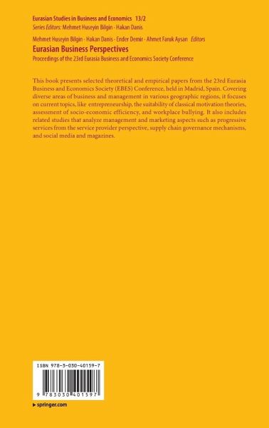 This book presents selected theoretical and empirical papers from the 23rd Eurasia Business and Economics Society (EBES) Conference, held in Madrid, Spain. Covering diverse areas of business and management in various geographic regions, it focuses on current topics, like entrepreneurship, the suitability of classical motivation theories, assessment of socio-economic efficiency, and workplace bullying. It also includes related studies that analyze management and marketing aspects such as progressive services from the service provider perspective, supply chain governance mechanisms, and social media and magazines.…mehr