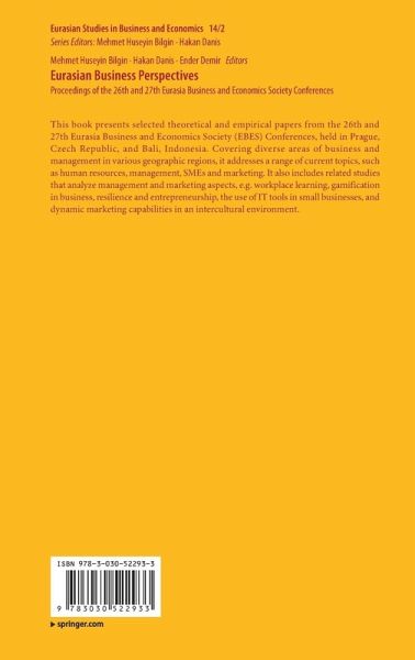 This book presents selected theoretical and empirical papers from the 26th and 27th Eurasia Business and Economics Society (EBES) Conferences, held in Prague, Czech Republic, and Bali, Indonesia. Covering diverse areas of business and management in various geographic regions, it addresses a range of current topics, such as human resources, management, SMEs and marketing. It also includes related studies that analyze management and marketing aspects, e.g. workplace learning, gamification in business, resilience and entrepreneurship, the use of IT tools in small businesses, and dynamic marketing capabilities in an intercultural environment.…mehr