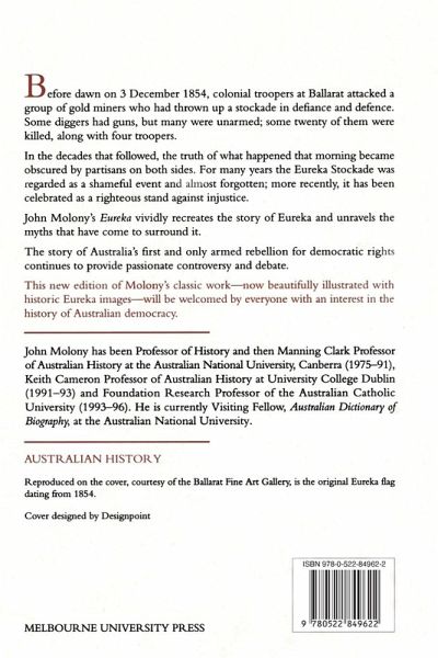 Before dawn on 3 December 1854, colonial troopers at Ballarat attacked a group of gold miners who had thrown up a stockade in defiance and defence. Some diggers had guns, but many were unarmed; some twenty of them were killed, along with four troopers. In the decades that followed, the truth of what happened that morning became obscured by partisans on both sides. For many years the Eureka Stockade was regarded as a shameful event and almost forgotten; more recently, it has been celebrated as a righteous stand against injustice. John Molony's Eureka vividly recreates the story of Eureka and unravels the myths that have come to surround it. This new edition of Molony's classic work, now beautifully illustrated with historic Eureka images, will be welcomed by everyone with an interest in the history of Australian democracy.