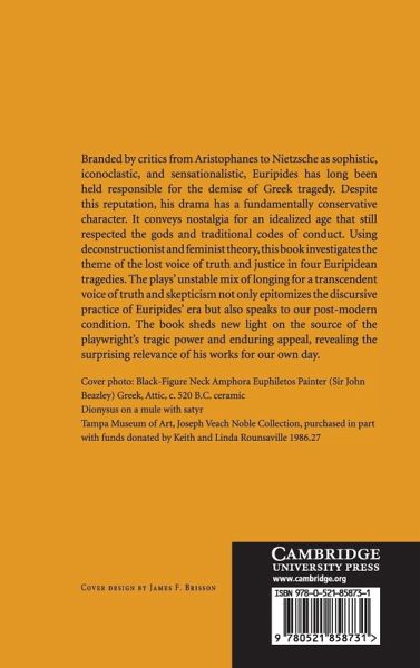 Branded by critics from Aristophanes to Nietzsche as sophistic, iconoclastic, and sensationalistic, Euripides has long been held responsible for the demise of Greek tragedy. Despite this reputation, his drama has a fundamentally conservative character. It conveys nostalgia for an idealized age that still respected the gods and traditional codes of conduct. Using deconstructionist and feminist theory, this book investigates the theme of the lost voice of truth and justice in four Euripidean tragedies. The plays' unstable mix of longing for a transcendent voice of truth and skeptical analysis not only epitomizes the discursive practice of Euripides' era but also speaks to our postmodern condition. The book sheds light on the source of the playwright's tragic power and enduring appeal, revealing the surprising relevance of his works for our own day.