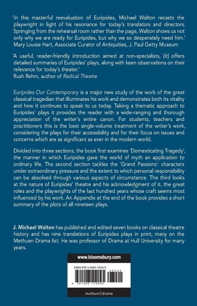 'A useful, reader-friendly introduction aimed at non-specialists, Euripides Our Contemporary offers detailed summaries of Euripides' plays, along with keen observations on their relevance for today's theater. Walton demonstrates how the tragedian's 'shocks to the system' have lost none of their power over the centuries.' Rush Rehm, author of Radical Theatre: Greek Tragedy and the Modern World
