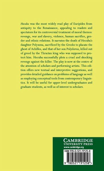 Hecuba was the most widely read play of Euripides from antiquity to the Renaissance, appealing to readers and spectators for its controversial treatment of moral themes: revenge, war and slavery, violence, human sacrifice, gender and ethnic relations. It narrates the death of Hecuba's daughter Polyxena, sacrificed by the Greeks to placate the ghost of Achilles, and that of her son Polydorus, killed out of greed by the Thracian king who was supposed to protect him. Hecuba successfully plots a cruel and shocking revenge against the killer. The play is now at the centre of the attention of scholars and performing artists. This edition offers new textual and interpretive suggestions, and provides detailed guidance on problems of language as well as employing conceptual tools from contemporary linguistics. It will be useful for upper-level undergraduates and graduate students, as well as of interest to scholars.