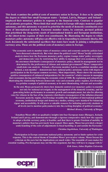 This book examines the political costs of monetary union in Europe. It does so by gauging the degree to which four small European states - Iceland, Latvia, Hungary and Ireland - employed their monetary policies in response to the financial crisis. Contrary to popular and academic perception, Moses finds that small states in Europe still enjoy monetary policy autonomy, and this autonomy was used to prioritise the needs of domestic constituents over those of international markets. Eurozone member states, by contrast, pursued policies that prioritised the (long-term) needs of international lenders and European institutions, at the (short-term) expense of their own constituents. By illustrating the degree to which monetary policy autonomy still plays an effective role in responding to economic shocks, this book documents the substantial sacrifices that states have made in joining a suboptimum currency area. These are the political costs of monetary union in Europe.