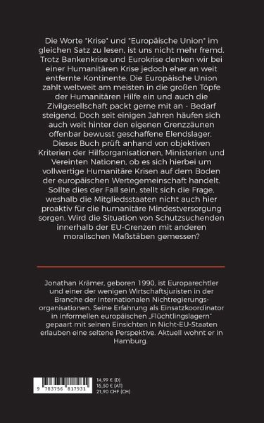 Die Worte "Krise" und "Europäische Union" im gleichen Satz zu lesen, ist uns nicht mehr fremd. Trotz Bankenkrise und Eurokrise denken wir bei einer Humanitären Krise jedoch eher an weit entfernte Kontinente. Die Europäische Union zahlt weltweit am meisten in die großen Töpfe der Humanitären Hilfe ein und auch die Zivilgesellschaft packt gerne mit an - Bedarf steigend. Doch seit einigen Jahren häufen sich auch weit hinter den eigenen Grenzzäunen offenbar bewusst geschaffene Elendslager. Dieses Buch prüft anhand von objektiven Kriterien der Hilfsorganisationen, Ministerien und Vereinten Nationen, ob es sich hierbei um vollwertige Humanitäre Krisen auf dem Boden der europäischen Wertegemeinschaft handelt. Sollte dies der Fall sein, stellt sich die Frage, weshalb die Mitgliedsstaaten nicht auch hier proaktiv für die humanitäre Mindestversorgung sorgen. Wird die Situation von Schutzsuchenden innerhalb der EU-Grenzen mit anderen moralischen Maßstäben gemessen?