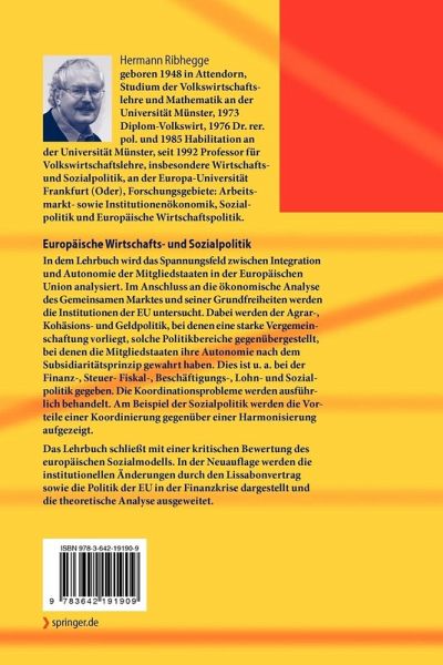 In dem Lehrbuch wird das Spannungsfeld zwischen Integration und Autonomie der Mitgliedstaaten in der Europäischen Union analysiert. Im Anschluss an die ökonomische Analyse des Gemeinsamen Marktes und seiner Grundfreiheiten werden die Institutionen der EU untersucht. Dabei werden der Agrar-, Kohäsions- und Geldpolitik, bei denen eine starke Vergemeinschaftung vorliegt, solche Politikbereiche gegenübergestellt, bei denen die Mitgliedstaaten ihre Autonomie nach dem Subsidiaritätsprinzip gewahrt haben. Dies ist u. a. bei der Finanz-, Steuer- Fiskal-, Beschäftigungs-, Lohn- und Sozialpolitik gegeben. Die Koordinationsprobleme werden ausführlich behandelt. Am Beispiel der Sozialpolitik werden die Vorteile einer Koordinierung gegenüber einer Harmonisierung aufgezeigt. Das Lehrbuch schließt mit einer kritischen Bewertung des europäischen Sozialmodells. In der Neuauflage werden die institutionellen Änderungen durch den Lissabonvertrag sowie die Politik der EU in der Finanzkrise dargestellt und die theoretische Analyse ausgeweitet.