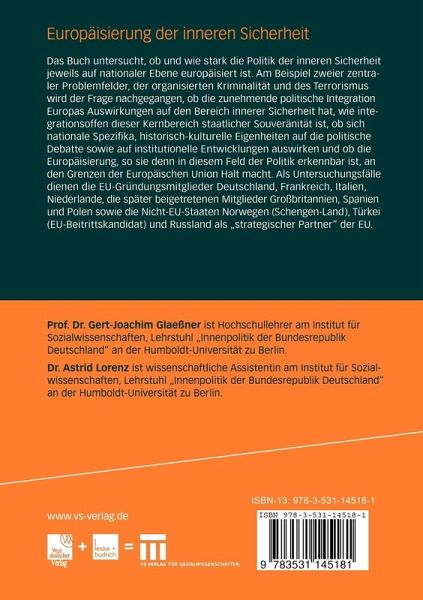 Das Buch untersucht, ob und wie stark die Politik der inneren Sicherheit jeweils auf nationaler Ebene europäisiert ist. Am Beispiel zweier zentraler Problemfelder, der organisierten Kriminalität und des Terrorismus wird der Frage nachgegangen, ob die zunehmende politische Integration Europas Auswirkungen auf den Bereich innerer Sicherheit hat, wie integrationsoffen dieser Kernbereich staatlicher Souveränität ist, ob sich nationale Spezifika, historisch-kulturelle Eigenheiten auf die politische Debatte sowie auf institutionelle Entwicklungen auswirken ung ob die Europäisierung, so sie denn in diesem Feld der Politik erkennbar ist, an den Grenzen der Europäischen Union Halt macht.