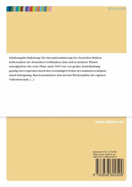 Die Internationalisierung der deutschen Banken, insbesondere der deutschen Großbanken, lässt sich in mehrere Phasen untergliedern.