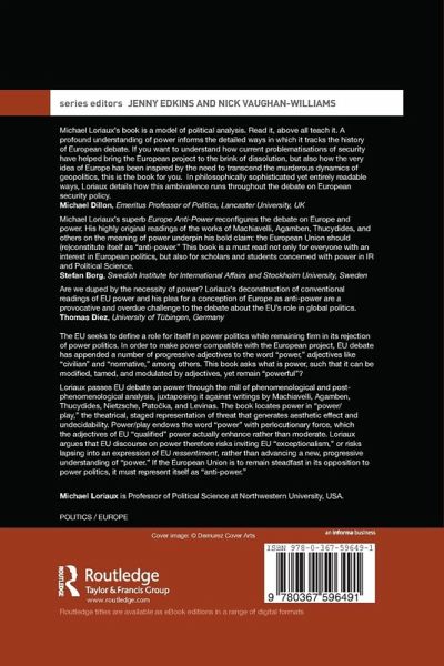 The EU seeks to define a role for itself in power politics while remaining firm in its rejection of power politics. In order to make power compatible with the European project, EU debate has appended a number of progressive adjectives to the word "power," adjectives like "civilian" and "normative," among others. This book asks what is power, such that it can be modified, tamed, and modulated by adjectives, yet remain "powerful"? Loriaux passes EU debate on power through the mill of phenomenological and post-phenomenological analysis, juxtaposing it against writings by Machiavelli, Agamben, Thucydides, Nietzsche, Patocka, and Levinas. The book locates power in "power/play," the theatrical, staged representation of threat that generates aesthetic effect and undecidability. Power/play endows the word "power" with perlocutionary force, which the adjectives of EU "qualified" power actually enhance rather than moderate. Loriaux argues that EU discourse on power therefore risks inviting EU "exceptionalism," or risks lapsing into an expression of EU ressentiment, rather than advancing a new, progressive understanding of "power." If European Union is to remain steadfast in its opposition to power politics, it must represent itself as "anti-power." This book will be of interest to those who work in the area of EU foreign policy, as well as to those who have a more general theoretical interest in the concept of power.