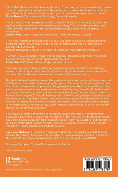Inter-marriage both reflects and brings social change. This book draws on a unique survey of randomly selected samples of national and European binational couples to demonstrate that the latter are core cells of a future European society. Unrestricted freedom of movement has enabled a rise in the number of lower-class and middle-class binational couples among Europeans. Euro-couples fully integrate in their host cities but secure less support in solving everyday problems than do national ones, partly because of a relatively small network of relatives living close-by. Embeddedness in a dense international network and a cosmopolitan outlook also distinguish them from national couples. The book challenges the view of cosmopolitanism as exclusively middle-class and highlights contrasts between lower-class and middle-class binational couples. Furthermore, it shows that social cosmopolitanism among binational couples is not matched by a commensurate weaker national identification that would enhance support to a more federal Europe. This book is primarily addressed to the general public interested in contemporary European society and to academics interested in inter-marriage. Since the chapters are quasi stand-alone pieces devoted to specific topics, it provides suitable reading material for social stratification, social networks, civil society, popular culture, and European integration undergraduate and graduate courses.