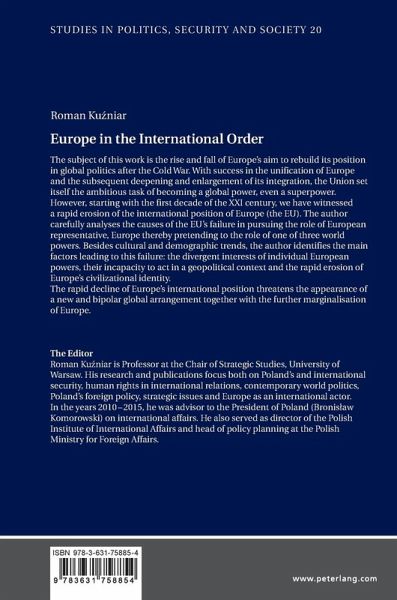 The subject of this work is the rise and fall of Europe's aim to rebuild its position in global politics after the Cold War. With success in the unification of Europe and the subsequent deepening and enlargement of its integration, the Union set itself the ambitious task of becoming a global power, even a superpower.