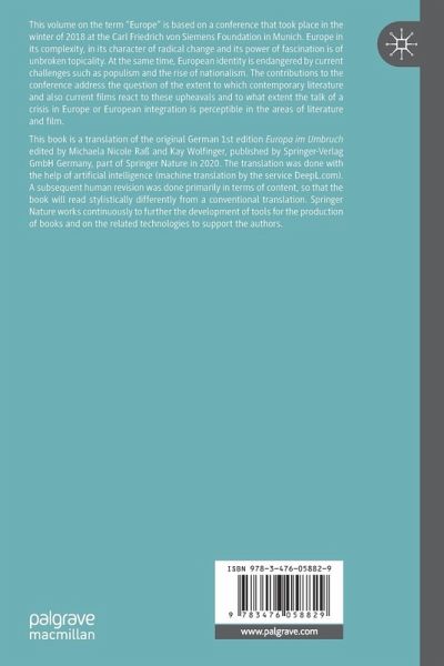 This volume on the term "Europe" is based on a conference that took place in the winter of 2018 at the Carl Friedrich von Siemens Foundation in Munich. Europe in its complexity, in its character of radical change and its power of fascination is of unbroken topicality. At the same time, European identity is endangered by current challenges such as populism and the rise of nationalism. The contributions to the conference address the question of the extent to which contemporary literature and also current films react to these upheavals and to what extent the talk of a crisis in Europe or European integration is perceptible in the areas of literature and film.