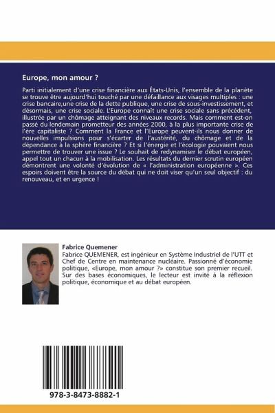 Parti initialement d une crise financière aux États-Unis, l ensemble de la planète se trouve être aujourd hui touché par une défaillance aux visages multiples : une crise bancaire,une crise de la dette publique, une crise de sous-investissement, et désormais, une crise sociale. L Europe connaît une crise sociale sans précédent, illustrée par un chômage atteignant des niveaux records. Mais comment est-on passé du lendemain prometteur des années 2000, à la plus importante crise de l ère capitaliste ? Comment la France et l Europe peuvent-ils nous donner de nouvelles impulsions pour s écarter de l austérité, du chômage et de la dépendance à la sphère financière ? Et si l énergie et l écologie pouvaient nous permettre de trouver une issue ? Le souhait de redynamiser le débat européen, appel tout un chacun à la mobilisation. Les résultats du dernier scrutin européen démontrent une volonté d évolution de " l administration européenne ". Ces espoirs doivent être la source du débat qui ne doit viser qu un seul objectif : du renouveau, et en urgence !