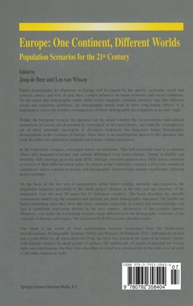 Future demographic developments in Europe will be caused by the specific economic, social and cultural context, and will, in turn, have a major influence on future economic and social conditions. To the extent that demographic trends differ across countries, separate countries may face different social and economic problems. As demographic trends tend to have long-lasting effects, it is important to assess the possible consequences of future demographic developments at an early stage. Within the European context, the question can be raised whether the socioeconomic and cultural dimensions of society are dominated by convergent or divergent forces, and what the consequences are of these assumed convergent or divergent tendencies for long-term future demographic developments in the countries of Europe. Since there is no unambiguous answer to this question, this book describes two alternative scenarios for Europe's future population. In the Uniformity scenario, convergent forces are dominant. This will eventually lead to a situation where only marginal economic and cultural differences exist across Europe. Trends in fertility and mortality will converge up to the year 2050, although over time patterns may differ across countries as a result of their different initial states. In contrast to the Uniformity scenario, a Diversity scenario is constructed where cultural, economic and demographic characteristics remain significantly different across countries. This book is the result of close collaboration between researchers from the Netherlands Interdisciplinary Demographic Institute (NIDI) and Statistics Netherlands (SN). Although the project was a joint effort by all researchers involved, the book has assumed the form of an edited volume, with separate chapters by small groups of authors. The authors are, of course, responsible for writing their own contributions, but they were often involved to a certain extent in the realisation of some of the other chapters as well.