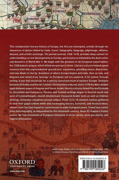 This collaborative literary history of Europe, the first yet attempted, unfolds through ten sequences of places linked by trade, travel, topography, language, pilgrimage, alliance, disease, and artistic exchange. The period covered, 1348-1418, provides deep context for understanding current developments in Europe, particularly as initiated by the destruction and disasters of World War II. We begin with the greatest of all European catastrophes: the 1348 bubonic plague, which killed one person in three. Literary cultures helped speed recovery from this unprecedented "ground zero" experience, providing solace, distraction, and new ideals to live by. Questions of where Europe begins and ends, then as now, and disputes over whom truly "belongs" on European soil are explored, if not solved, through writing. A war that would last for a century convulsed much of western Europe. Divisions between Orthodox and Roman Catholic Christianities endured, and in 1378 the West divided again between popes of Avignon and Rome. Arabic literary cultures linked Fes and Granada to Jerusalem and Damascus; Persian and Turkish writings began to flourish south and west of Constantinople; Jewish intellectuals treasured Arabic texts as well as Hebrew writings; Armenian colophons proved unique. From 1414-18 western nations gathered to heal their papal schism while also exchanging literary, humanist, and musical ideas; visitors from the East hoped for commitment to wider European peace. Freed from nation state historiography, as bequeathed by the nineteenth century, these 82 chapters freshly assess the free movement of European literature in all its variety, local peculiarity, and regenerative power.
