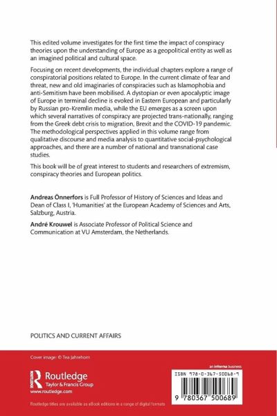 Focusing on recent developments, the individual chapters explore a range of conspiratorial positions related to Europe. In the current climate of fear and threat, new and old imaginaries of conspiracies such as Islamophobia and anti-Semitism have been mobilised. A dystopian or even apocalyptic image of Europe in terminal decline is evoked in Eastern European and particularly by Russian pro-Kremlin media, while the EU emerges as a screen upon which several narratives of conspiracy are projected trans-nationally, ranging from the Greek debt crisis to migration, Brexit and the COVID-19 pandemic. The methodological perspectives applied in this volume range from qualitative discourse and media analysis to quantitative social-psychological approaches, and there are a number of national and transnational case studies.