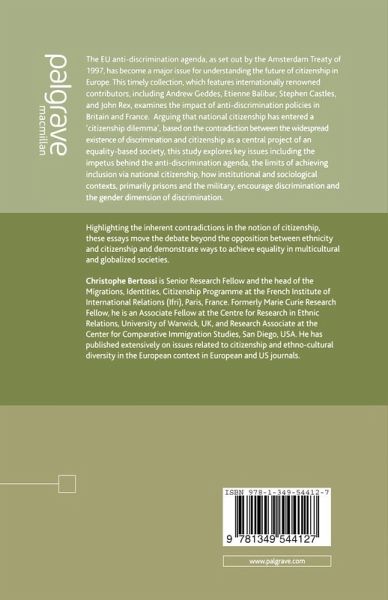 Acknowledgements Notes on the Contributors Introduction; C.Bertossi PART I: FROM CITIZENSHIP TO DISCRIMINATION: THE LIMITS OF INCLUSION Nation and Empire: Hierarchies of Citizenship in the New Global Order; S.Castles Cultures of Equality, Traditions of Belonging; A.Rudiger Does Anti-Discrimination Require Recognition?; E.Ferrarese Social Citizenship, Ethnic Minorities and the Welfare State; J.Rex PART II: THE EU FIGHT AGAINST DISCRIMINATION Social Exclusion, Diversity and the EU's Anti-Discrimination Agenda; C.-U. Schierup The Europeanization of Anti-Discrimination in Britain and France; A.Geddes & V.Guiraudon Religious Discrimination: Muslims Claiming Equality in the EU; V.Amiraux PART III: DISCRIMINATION IN FRENCH AND BRITISH CONTEXTS Societal Framework in Britain and France: Muslims in Prison; J.Beckford & D.Joly Ethnicity, Islam and Allegiances in the French Military; C.Bertossi Refugees, Gender and Citizenship in Britain and France; K.Wadia Afterword; E.Balibar
