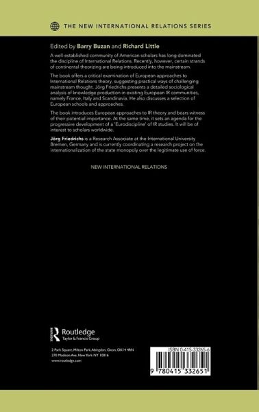 A well-established community of American scholars has long dominated the discipline of international relations. Recently, however, certain strands of continental theorizing are being introduced into the mainstream. This is a critical examination of European approaches to international relations theory, suggesting practical ways of challenging manistream thought. Freidrichs presents a detailed sociological analysis of knowledge production in existing European IR communities, namely France, Italy and Scandinavia. He also discusses a selection of European schools and approaches.