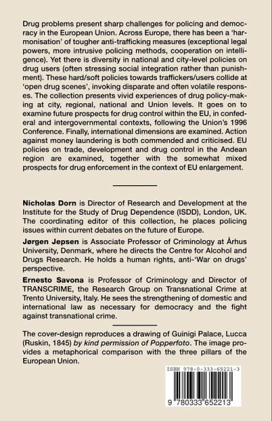 Drug problems present sharp challenges for policing and democracy in the European Union. Harmonisation of anti-trafficking measures contrasts with diversity of local policies on drug users. 'Open drug scenes' trigger innovative but often volatile responses. This collection presents vivid experiences of drug policy-making at city, regional and higher levels. For the future, beyond 1996, EU 'confederal' and 'intergovernmental' scenarios have distinct implications for drugs. Finally, international dimensions are explored - drug control through money laundering countermeasures, trade and development policies, security and EU enlargement.