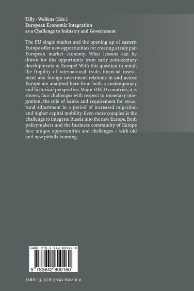 Contents: European Economic Integration: Did it Matter in the Past, Will it Matter in the Future?- European Economic Integration: Employment, Unemployment and Migration.- The EU Facing Economic Opening-Up in Eastern Europe: Problems, Issues and Policy Options.- Protectionism in Europe before 1939.- Structural Adjustment and Growth Policies in Europe: Competition and/or Cooperation?- International Capital Flows and Political Transition in Europe: Historical Perspectives.- Germany's Changing Competitive Position in World Markets: Required Policy Shifts.- Financial Regulation and the Bank's Role in European Economies.- Sterling in Decline Again: The 1931 and 1992 Crises Compared.- Banks and Industry: Lessons From History?- Banks and Industry in Anglo-German Perspective.- Russia and Europe: Lessons from the Pre-Command Era.- External Liberalization in a Large Country: The Contribution to the Transition Process in Russia.