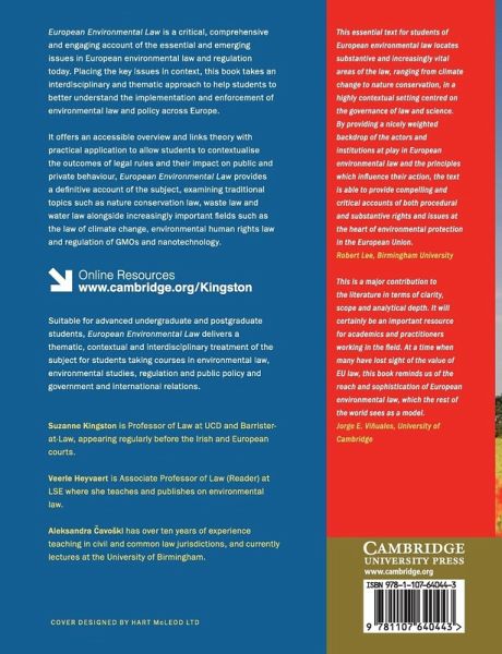 'This essential text for students of EU environmental law locates substantive and increasingly vital areas of the law, ranging from climate change to nature conservation, in a highly contextual setting centred on the governance of law and science. By providing a nicely weighted backdrop of the actors and institutions at play in EU environmental law and the principles which influence their action, the text is able to provide compelling and critical accounts of both procedural and substantive rights and issues at the heart of environmental protection in the European Union.' Robert Lee, Birmingham University