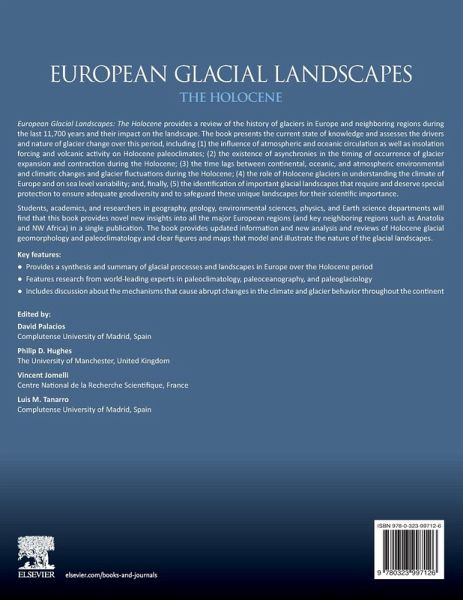 European Glacial Landscapes: The Holocene presents the current state of knowledge on glacial landscapes of Europe and nearby areas over the Holocene to deduce the influence of atmospheric and oceanic currents and the insolation forcing variability and volcanic activity on Holocene paleoclimates, the existence of asynchronies in the timing of occurrence of glacier expansion and shrinkage during the Holocene, time lags between the identification of oceanic and atmospheric changes and those occurring in glacial extension during the Holocene, the role of Holocene glaciers on the climate of Europe, and on sea level variability, and the delimitation of landscapes that need special protection. Students, academics and researchers in Geography, Geology, Environmental Sciences, Physics and Earth Science departments will find this book provides novel findings of all the major European Regions in a single publication, with updated information about Holocene glacial geomorphology and paleo-climatology and clear figures that model the landscapes covered.