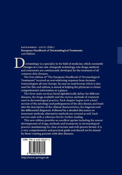 Dermatology is a specialty in the field of medicine which constantly changes at a vast rate. Alongside technology, new drugs, methods and treatments are continuously developed for the treatment of all common skin diseases. The first edition of the European Handbook of Dermatological Treatments received an overwhelming response from dermatovenereologists all over Europe. Its easy-to-read format, which is also used for this 2nd edition, is aimed at helping the physician to obtain comprehensive information at a glance. The three main sections listed alphabetically define the different diseases, the drugs available and the various methods of treatment used in dermatological practice. Each chapter begins with a brief section of the aetiology and pathogenesis of the skin disease, and leads into the description of the clinical characteristics, the diagnosis and the differential diagnosis. Followed by a detailed discussion on treatment methods, alternative methods are covered as well. Each section ends with a reference list for further reading. This new edition provides an excellent update including the newest developments of drugs, methods and treatments in dermatological practice, maintaining the clear structure and well-proven format. It is a very comprehensive and practical guide and should not be missed by those treating patients with skin diseases.