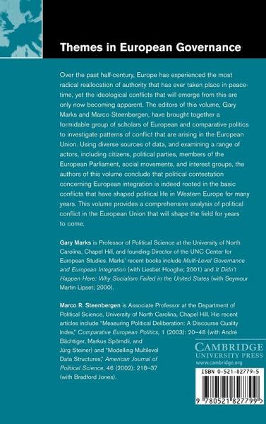 Over the past half-century, Europe has experienced the most radical reallocation of authority that has ever taken place in peace-time, yet the ideological conflicts that will emerge from this are only now becoming apparent. The editors of this 2004 volume, Gary Marks and Marco Steenbergen, have brought together a formidable group of scholars of European and comparative politics to investigate patterns of conflict that are arising in the European Union. Using diverse sources of data, and examining a range of actors, including citizens, political parties, members of the European Parliament,…mehr