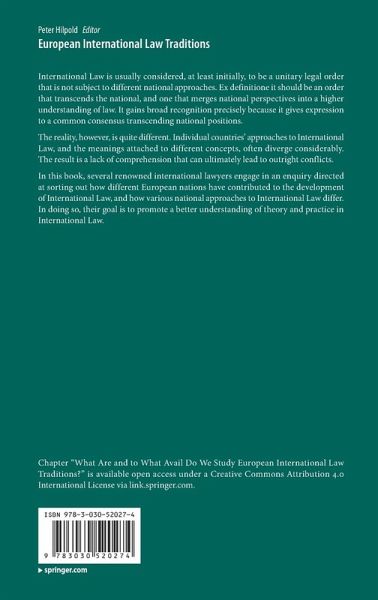What are and to what avail do we study European International Law Traditions? by Peter Hilpold.- The Concept of International Law - The German Perspective by Christian Tomuschat.- The 'Austrian School of International Law' - The influence of Austrian international lawyers on the formation of the present international legal order by Heribert Franz Köck.- The Concept of International Law: The Italian Perspective by Carlo Focarelli.- The French Tradition of International Law by Andrea Hamann.- British Contributions to Public International Law by Michael Wood.- Exploring Belgian and Dutch "Traditions" in International Law by Jan Wouters and Nina Pineau.- International Law from a Nordic Perspective by Astrid Kjeldgaard-Pedersen and Jakob v.H. Holtermann.- The Russian Concept of International Law as Imperial Legacy by Lauri Mälksoo.- International Adjudication under Particular Consideration of International Criminal Justice: The German Contribution by Stefanie Bock.- The development of International Economic Law - Contributions of German-Speaking Countries by Ernst-Ulrich Petersmann.
