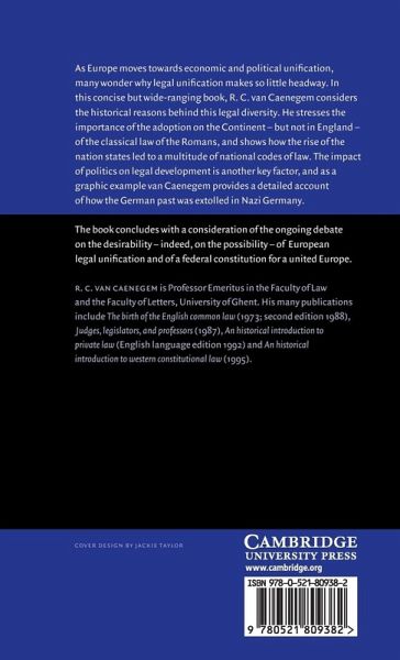 As Europe moves towards economic and political unification, many wonder why legal unification makes so little headway. In this concise but wide-ranging book, R. C. van Caenegem considers the historical reasons behind this legal diversity. He stresses the importance of the adoption on the Continent - but not in England - of the classical law of the Romans, and shows how the rise of the nation states led to a multitude of national codes of law. The impact of politics on legal development is another key factor, and as a graphic example van Caenegem provides a detailed account of how the German past was extolled in Nazi Germany. The book concludes with a consideration of the ongoing debate on the desirability - indeed, on the possibility - of European legal unification and of a federal constitution for a united Europe.