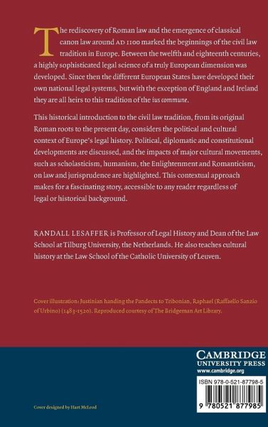 The rediscovery of Roman law and the emergence of classical canon law around AD 1100 marked the beginnings of the civil law tradition in Europe. Between the twelfth and eighteenth centuries, a highly sophisticated legal science of a truly European dimension was developed. Since then the different European States have developed their own national legal systems, but with the exception of England and Ireland they are all heirs to this tradition of the ius commune. This historical introduction to the civil law tradition, from its original Roman roots to the present day, considers the political and cultural context of Europe's legal history. Political, diplomatic and constitutional developments are discussed, and the impacts of major cultural movements, such as scholasticism, humanism, the Enlightenment and Romanticism, on law and jurisprudence are highlighted. This contextual approach makes for a fascinating story, accessible to any reader regardless of legal or historical background.