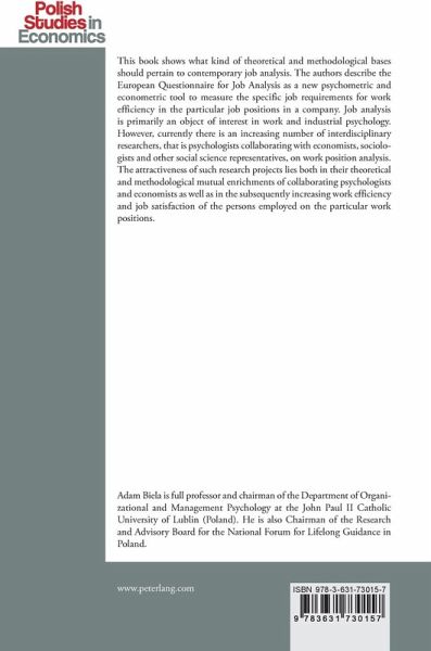 This book shows what kind of theoretical and methodological bases should pertain to contemporary job analysis. The authors describe the European Questionnaire for Job Analysis as a new psychometric and econometric tool to measure the specific job requirements for work efficiency in the particular job positions in a company. Job analysis is primarily an object of interest in work and industrial psychology. However, currently there is an increasing number of interdisciplinary researchers, that is psychologists collaborating with economists, sociologists and other social science representatives, on work position analysis. The attractiveness of such research projects lies both in their theoretical and methodological mutual enrichments of collaborating psychologists and economists as well as in the subsequently increasing work efficiency and job satisfaction of the persons employed on the particular work positions.