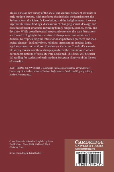 A pioneering social and cultural history of sexuality in Europe from the Renaissance through the Enlightenment. Ideas about fertility, love, affection, sin, health, disease, criminality, and deviancy changed dramatically in this period and Katherine Crawford shows how these changes produced the conditions in which modern notions of sexuality were developed.
