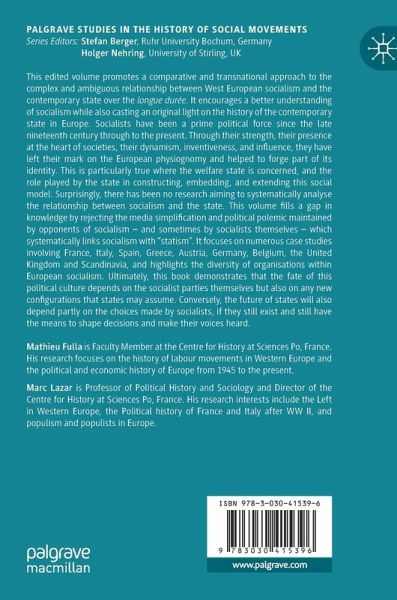 This edited volume promotes a comparative and transnational approach to the complex and ambiguous relationship between West European socialism and the contemporary state over the longue durée . It encourages a better understanding of socialism while also casting an original light on the history of the contemporary state in Europe. Socialists have been a prime political force since the late nineteenth century through to the present. Through their strength, their presence at the heart of societies, their dynamism, inventiveness, and influence, they have left their mark on the European physiognomy and helped to forge part of its identity. This is particularly true where the welfare state is concerned, and the role played by the state in constructing, embedding, and extending this social model. Surprisingly, there has been no research aiming to systematically analyse the relationship between socialism and the state. This volume fills a gap in knowledge by rejecting the media simplification and political polemic maintained by opponents of socialism - and sometimes by socialists themselves - which systematically links socialism with "statism". It focuses on numerous case studies involving France, Italy, Spain, Greece, Austria, Germany, Belgium, the United Kingdom and Scandinavia, and highlights the diversity of organisations within European socialism. Ultimately, this book demonstrates that the fate of this political culture depends on the socialist parties themselves but also on any new configurations that states may assume. Conversely, the future of states will also depend partly on the choices made by socialists, if they still exist and still have the means to shape decisions and make their voices heard.