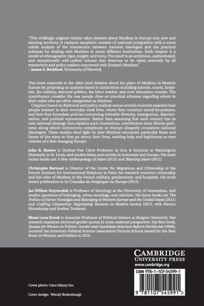 This book responds to the often loud debates about the place of Muslims in Western Europe by proposing an analysis based in institutions, including schools, courts, hospitals, the military, electoral politics, the labor market, and civic education courses. The contributors consider the way people draw on practical schemas regarding others in their midst who are often categorized as Muslims. Chapters based on fieldwork and policy analysis across several countries examine how people interact in their everyday work lives, where they construct moral boundaries, and how they formulate policies concerning tolerable diversity, immigration, discrimination, and political representation. Rather than assuming that each country has its own national ideology that explains such interactions, contributors trace diverse pathways along which institutions complicate or disrupt allegedly consistent national ideologies. These studies shed light on how Muslims encounter particular faces and facets of the state as they go about their lives, seeking help and legitimacy as new citizens of a fast-changing Europe.