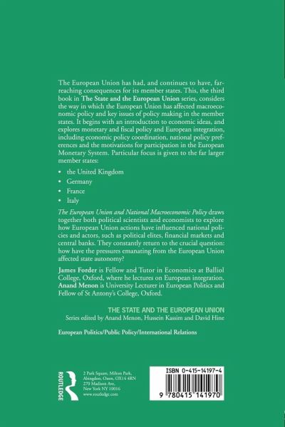 Considers the way in which the European Union has affected autonomy in macroeconomic policy-making of the member states. It begins with an introduction to economic ideas, and explores current themes surrounding monetary and fiscal policy and European integration, including economic policy co-ordination, objectives in national policy-making and motivations for participating in the European Monetary System. Particular focus is given to the larger member states: * the United Kingdom * Germany * France * Italy.