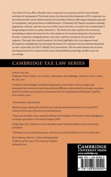 How does EU law affect Member State corporate tax systems and the cross-border activities of companies? This book traces the historical development of EU corporate tax law and provides an in-depth analysis of a number of issues affecting companies, groups of companies, and permanent establishments. Christiana HJI Panayi examines existing legislation, soft law, and the case law of the Court of Justice, as well as the Commission's burgeoning external tax policy initiatives. The book not only explores the tax issues pertaining to direct investment, but also analyzes the taxation of passive investment income, corporate reorganisations, exit taxes, and the treatment of anti-abuse regimes. Through this careful analysis, the book highlights the convergences and divergences arising from the interplay between EU corporate tax law and international tax law, especially the OECD model tax convention. This second edition also reviews developments in the context of the State aid prohibition and high-profile cases on tax rulings.