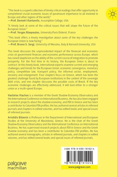 The chapters are authored by international experts and examine current and emerging challenges and trends for the European Union: economic convergence, monetary policy, competition law, transport policy, the informal sector, employment, recovery and enlargement. Four chapters focus on Greece, which has been the greatest challenge faced by European institutions in the context of the sovereign debt crisis, and one chapter discusses the possible costs of Brexit. The reader will benefit from understanding the key economic challenges, which, if effectively addressed, will lead to deepening the union, or in contrast to a multi-speed Europe.