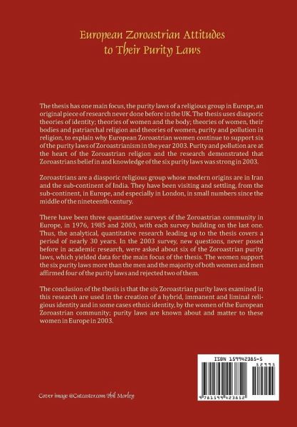 The thesis has one main focus, the purity laws of a religious group in Europe, an original piece of research never done before in the UK. The thesis uses diasporic theories of identity; theories of women and the body; theories of women, their bodies and patriarchal religion and theories of women, purity and pollution in religion, to explain why European Zoroastrian women continue to support six of the purity laws of Zoroastrianism in the year 2003. Purity and pollution are at the heart of the Zoroastrian religion and the research demonstrated that Zoroastrians belief in and knowledge of the six purity laws was strong in 2003. Zoroastrians are a diasporic religious group whose modern origins are in Iran and the sub-continent of India. They have been visiting and settling, from the sub-continent, in Europe, and especially in London, in small numbers since the middle of the nineteenth century. There have been three quantitative surveys of the Zoroastrian community in Europe, in 1976, 1985 and 2003, with each survey building on the last one. Thus, the analytical, quantitative research leading up to the thesis covers a period of nearly 30 years. In the 2003 survey, new questions, never posed before in academic research, were asked about six of the Zoroastrian purity laws, which yielded data for the main focus of the thesis. The women support the six purity laws more than the men and the majority of both women and men affirmed four of the purity laws and rejected two of them. The conclusion of the thesis is that the six Zoroastrian purity laws examined in this research are used in the creation of a hybrid, immanent and liminal religious identity and in some cases ethnic identity, by the women of the European Zoroastrian community; purity laws are known about and matter to these women in Europe in 2003.
