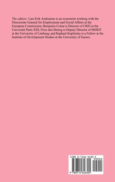 Lars Erik Andreasen is an economist working for the Directorate General for Employment and Social Affairs at the European Commission in Brussels. Benjamin Coriat teaches and researches at the Universite Paris-Nord. Friso den Hertog is a researcher and Deputy Director of the Maastricht Economic Research Institute on Innovation and Technology (MERIT) at the University of Limburg in Maastricht. Raphael Kaplinsky is a Fellow at the Institute of Development Studies at the University of Sussex.